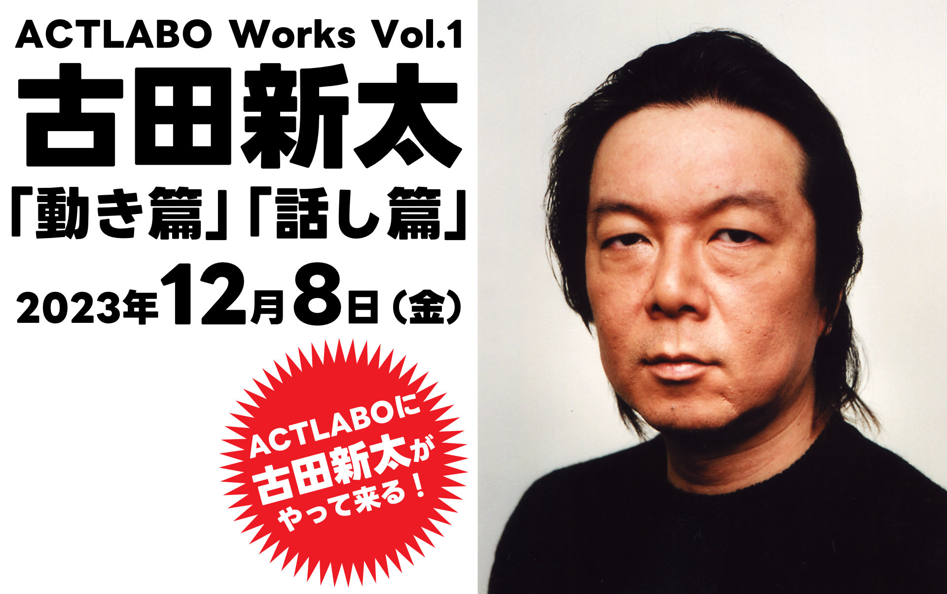 第1弾は、劇団☆新感線の看板俳優、只今上演中(~11/20)の「天號星」でも主演を務める古田新太が登場!「動き篇」と「話し篇」の2つのプログラムを開催します。楽しみながら、本物の極意を体感してください!